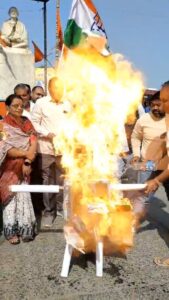 नगर अध्यक्ष के नेतृत्व में कांग्रेस जनों ने मंत्री विजयवर्गी का पुतला फूंका