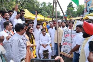 जिलाध्यक्ष को गांधी चौराहे पर फलों से तोला