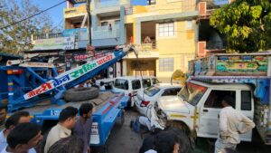 मौके पर दुर्घटना को देख सैकड़ो लोगों की भीड़ इकठ्ठा हो गई, पुलिस को सूचना मिलने पर मौके पर तत्काल यातायात और पुलिस प्रशासन पहुंचा, जिन्होंने भीड़ को हटाते हुए क्रेन की मदद से दुर्घटनाग्रस्त वाहन को किनारे किया और थाने लेकर गए।