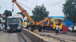 आज दोपहर करीब 3 बजे दो बड़ी क्रेन की मदद से ट्रेलर को सड़क किनारे किया, साथ ही उसके टैंक को दूसरे ट्रेलर चेचिस में लोड करके ट्रांसपोर्ट तक पहुंचाया गया। जिस कारण काफी देर तक आने जाने वाले यातायात को रोका गया।