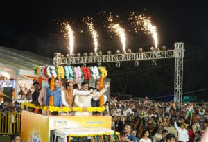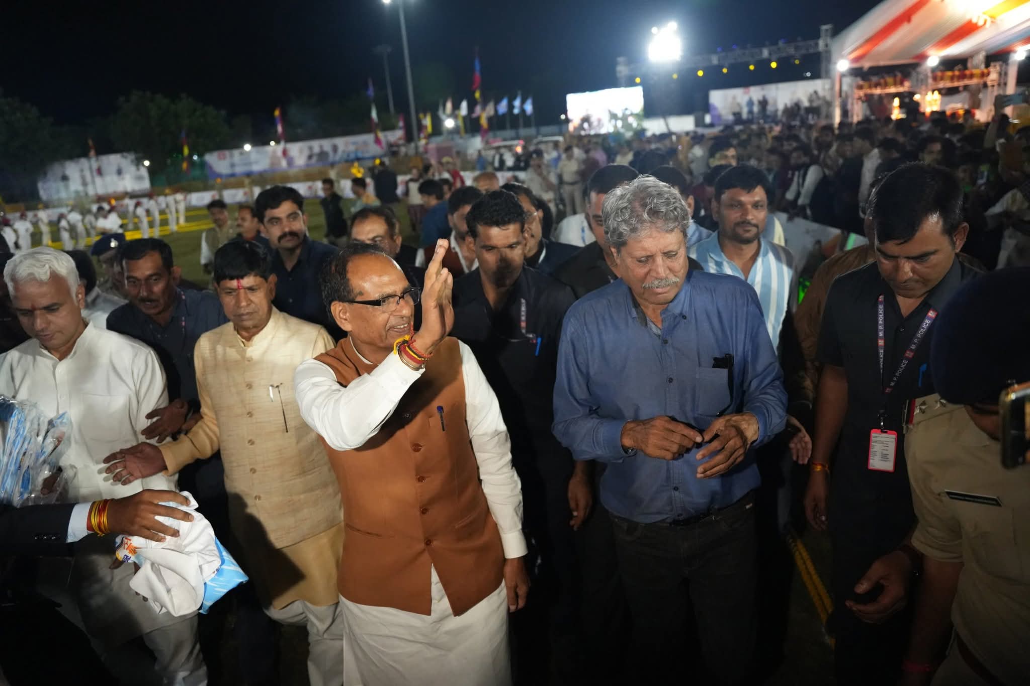 मुख्यमंत्री डॉ यादव ने कहा कि केंद्रीय मंत्री श्री चौहान अभिनंदन के पात्र हैं जो उन्होंने इस खेल उत्सव की कल्पना की। मुख्यमंत्री डॉ मोहन यादव ,केंद्रीय मंत्री श्री शिवराज सिंह चौहान और भारतीय क्रिकेट टीम के पूर्व कप्तान श्री कपिल देव का विदिशा पहुंचने पर अनेक स्थानों पर फूल मालाओं से हुआ भव्य स्वागत।
