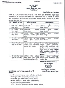 गृह विभाग ने तीन आईपीएस अधिकारियों अनु बेनीवाल, सर्वप्रिय सिन्हा और आदित्य पटले स्थानांतरण किया गया है इसी तरह राज्य पुलिस सेवा के अधिकारी आशीष खरे, रश्मि धुर्वे डाबर और मंजीत सिंह चावला की पदस्थापना में बदलाव किया है।